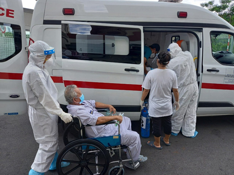 Vận chuyển bệnh nhân Covid-19 khỏi bệnh về nhà - Ảnh: Bộ Y tế