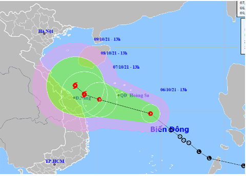 Theo Trung tâm Dự báo khí tượng Thủy văn quốc gia, hồi 13 giờ ngày 6-10, vị trí tâm áp thấp nhiệt đới cách quần đảo Hoàng Sa khoảng 330 km về phía Đông Nam. Dự báo trong 48 giờ tới, áp thấp nhiệt đới có khả năng mạnh thêm và có khả năng mạnh lên thành bão (cơn bão số 7).