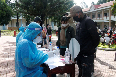Thanh niên tình nguyện ghi thông tin công dân trở về từ các tỉnh phía Nam. (Ảnh minh họa)