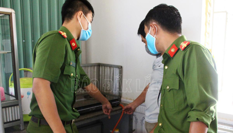 Công an huyện Krông Pắc kiểm tra thiết bị phòng cháy, chữa cháy tại cửa hàng gas Quý Loan ở thị trấn Phước An