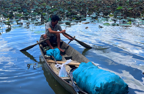 Đây cũng là hồ sen tự nhiên lớn, nơi mưu sinh của nhiều hộ dân địa phương nhờ bán củ, ngó, hạt sen.