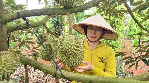 Chị Vũ Thị Thủy chăm sóc vườn sầu riêng