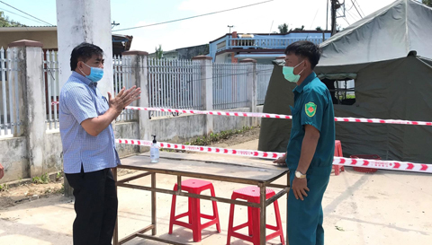 Bí thư Huyện ủy Lắk Võ Ngọc Tuyên trò chuyện, thăm hỏi lực lượng làm nhiệm vụ tại khu phong tỏa thuộc xã Đắk Liêng vào hồi tháng 7-2021.