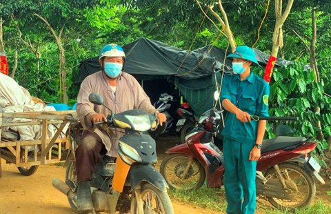 Lực lượng làm nhiệm vụ tại chốt kiểm soát dịch qua địa bàn xã Ea R'bin, huyện Lắk