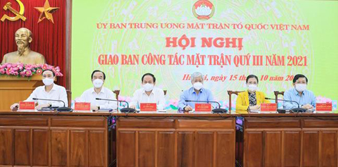 Báo cáo tại hội nghị khẳng định, quý III năm 2021, cả nước đối diện với rất nhiều khó khăn, thách thức bởi đại dịch COVID-19 ảnh hưởng đến mọi mặt đời sống, kinh tế - xã hội. Trong bối cảnh khó khăn chung đó, tổ chức Mặt trận đã phát huy vai trò hạt nhân, nòng cốt trong công tác tập hợp, đoàn kết các tầng lớp nhân dân, huy động mọi nguồn lực, chung sức cùng Đảng, Nhà nước phòng, chống dịch COVID-19, đảm bảo an sinh xã hội.