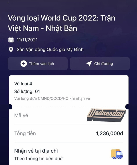 Giao dịch mua vé trận đấu của đội tuyển Việt Nam gặp Nhật Bản thành công của một cổ động viên