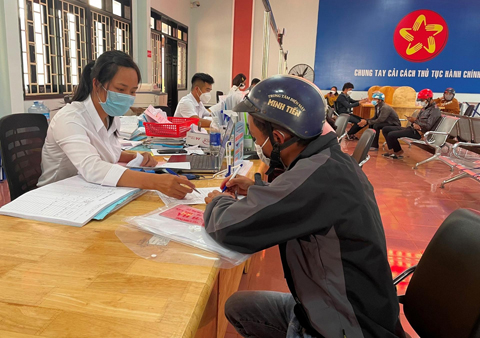 Người dân đến giao dịch tại Bộ phận Tiếp nhận và trả kết quả huyện Krông Năng.