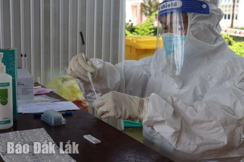 Nhân viên Trung tâm Y tế huyện Lắk tiến hành xét nghiệm SARS-CoV-2.