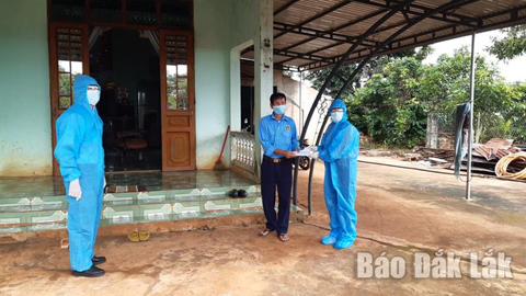 Lãnh đạo huyện Krông Năng thăm hỏi, tặng quà và kiểm tra các đối tượng đang thực hiện cách ly y tế tại nơi ở.