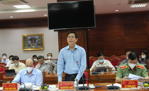 Ủy viên Trung ương Đảng, Bí thư Tỉnh ủy, Trưởng Ban Chỉ đạo phòng chống dịch COVID-19 tỉnh Nguyễn Đình Trung phát biểu tại buổi làm việc.