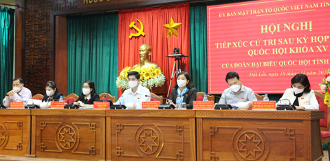 Tại hội nghị, đại diện Đoàn ĐBQH tỉnh đã báo cáo với cử tri kết quả của Kỳ họp thứ 2, Quốc hội khóa XV và hoạt động của Đoàn ĐBQH tỉnh tại kỳ họp. Theo đó, tại Kỳ họp thứ 2, Quốc hội đã xem xét, thông qua 2 luật, 12 nghị quyết; cho ý kiến 5 dự án luật khác; thảo luận và quyết định nhiều nội dung quan trọng về công tác phòng, chống dịch COVID-19; chương trình, kế hoạch phục hồi, phát triển kinh tế - xã hội và các vấn đề quan trọng khác…