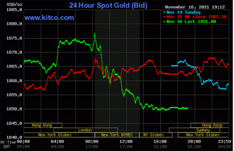 Biểu đồ giá vàng thế giới 17/11. Nguồn: KK.
