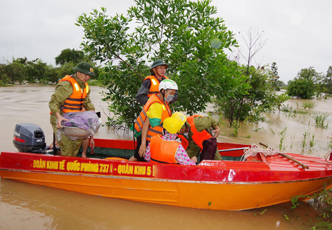 Đoàn Kinh tế - Quốc phòng 737 tham gia sơ tán người dân đến nơi tránh trú an toàn.