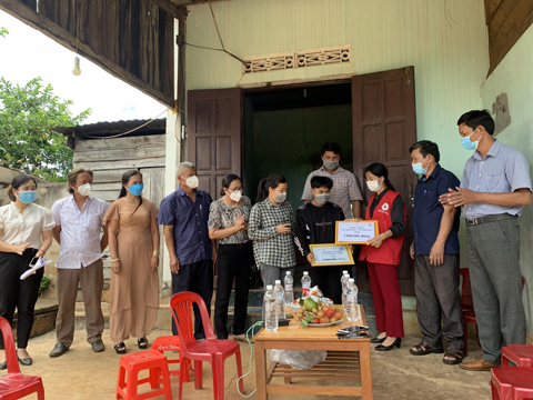 Đại diện Hội Chữ thập đỏ tỉnh đến thăm, động viên mẹ con chị H'Ngăn Adrơng