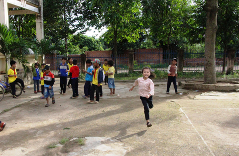 Giờ ra chơi của học sinh Trường Tiểu học Đinh Núp, xã Ea Yiêng, huyện Krông Pắc (Ảnh chụp trước thời điểm bùng phát dịch).