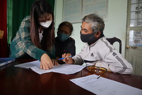 Cán bộ Phòng Đền bù giải phóng mặt bằng (Ban Quản lý) công khai Dự thảo phương án đền bù, hỗ trợ khi thu hồi đất tại xã Hòa Đông (huyện Krông Pắc).