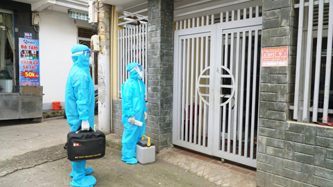 Nhân viên y tế phường Thống Nhất (TP. Buôn Ma Thuột) đến gia đình người mắc COVID-19 để kiểm tra sức khỏe, điều trị bệnh cho bệnh nhân.