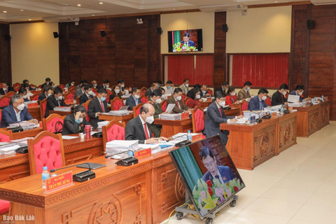 Bên cạnh đó, Kỳ họp cũng xem xét các tờ trình và thông qua 30 nghị quyết, trong đó có nhiều nghị quyết quan trọng liên quan đến phát triển kinh tế - xã hội của tỉnh như: Kế hoạch đầu tư công trung hạn giai đoạn 2021 – 2025; quyết định chủ trương đầu tư các dự án trên địa bàn tỉnh; Kế hoạch xây dựng và phát triển TP. Buôn Ma Thuột đến năm 2030, tầm nhìn đến năm 2045; hỗ trợ phát triển kinh tế tập thể tỉnh Đắk Lắk giai đoạn 2021 – 2025; Quy định định mức phân bổ dự toán chi thường xuyên ngân sách địa phương năm 2022; Nghị quyết về bảo tồn và phát huy văn hóa cồng chiêng trên địa bàn tỉnh Đắk Lắk, giai đoạn 2022 – 2025; Quy định mức chuẩn trợ giúp xã hội, mức trợ giúp xã hội áp dụng trên địa bàn tỉnh Đắk Lắk; Quy định hỗ trợ mức đóng bảo hiểm y tế cho một số nhóm đối tượng tham gia bảo hiểm y tế trên địa bàn tỉnh Đắk Lắk; Quy định chức danh, số lượng, mức phụ cấp đối với người hoạt động không chuyên trách ở cơ sở và cấp dưới cơ sở; việc sáp nhập thôn, buôn, tổ dân phố (đợt 3)...