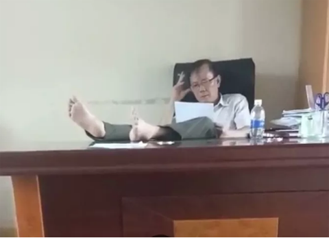 Hạt trưởng kiểm lâm có thói quen gác 2 chân lên bàn xin từ chức