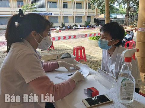 Ghi nhận tại trường THCS Phạm Hồng Thái (TP. Buôn Ma Thuột) cho thấy, nhà trường đã chuẩn bị cơ sở vật chất rất chu đáo như khử khuẩn toàn bộ trường học, nhất là các khu vực có nguy cơ lây nhiễm cao như cổng trường, khu vệ sinh, khu vực hành lang hoặc khu tập trung đông học sinh; tổ chức 2 phòng tiêm, 4 phòng chờ sau tiêm theo yêu cầu của ngành y tế. Khu vực ngoài sân trường cũng được phân luồng, giãn cách học sinh bằng cách chia thời gian khung giờ cụ thể cho mỗi lớp và thực hiện đầy đủ 5K theo quy định. Cùng với đó, nhà trường cũng đẩy mạnh tuyên truyền cho phụ huynh học sinh để tất cả các em đều tham gia tiêm chủng đầy đủ.
