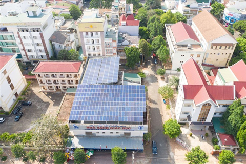 Công trình điện mặt trời trên mái nhà tại Công ty Cổ phần Sách và thiết bị trường học Đắk Lắk. Ảnh: Nguyễn Cẩm