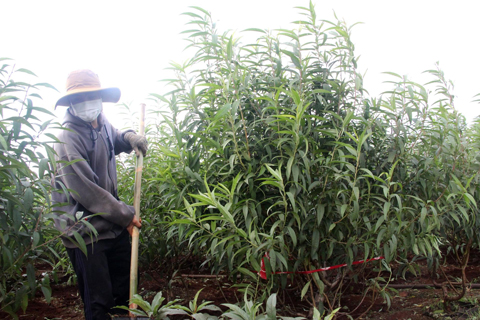 Ông Nguyễn Văn Chiến (phường Thống Nhất), chủ một trong những vườn đào có diện tích lớn nhất thị xã Buôn Hồ chia sẻ, tuy mới trồng đào từ 4 năm nay, nhưng vụ Tết này gia đình ông đã trồng gần 7.000 cây. Trong đó, có khoảng 2.500 cây ở địa bàn phường Thống Nhất, còn lại được trồng ở xã Cư Bao từ đầu năm 2020. Để tuốt lá đào cho kịp thời vụ, hằng năm gia đình ông phải thuê khoảng 20 - 30 lao động với tiền công 20 nghìn đồng/giờ. Công việc tuốt lá tuy không vất vả nhưng đòi hỏi phải cẩn trọng, chịu khó. Sau khi tuốt lá xong phải thu dọn hết lá dưới gốc cây bởi nếu lá đào ngấm vào đất sẽ ảnh hưởng đến việc ra hoa của cây. Do thời tiết năm nay không thuận lợi nên thay vì chỉ phải bón thuốc cho cây một lần thì đến thời điểm này ông đã phải bón ba lần; những ngày tới cũng phải xem trời nóng hay lạnh mới quyết định thời điểm tập trung tuốt lá.