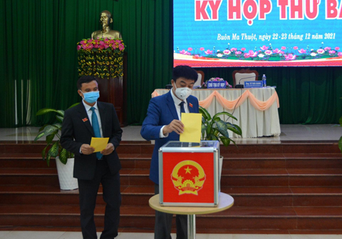 Các đại biểu bỏ phiếu bầu bổ sung chức danh Phó Chủ tịch UBND TP. Buôn Ma Thuột khóa XII, nhiệm kỳ 2021 – 2026.