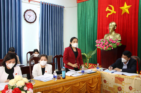 Phó Trưởng đoàn chuyên trách Đoàn ĐBQH tỉnh Lê Thị Thanh Xuân nêu ý kiến trao đổi.