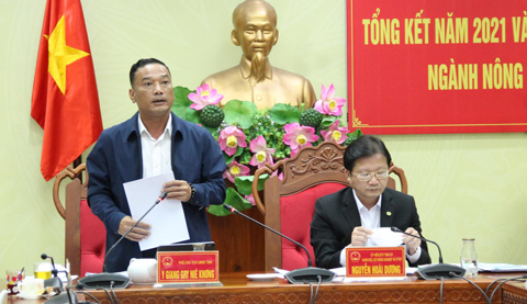Phát biểu tại hội nghị, Phó Chủ tịch UBND tỉnh Y Giang Gry Niê Knơng biểu dương thành tích đạt được của ngành NN-PTNT năm 2021, nhất là trong bối cảnh có nhiều khó khăn do tình hình dịch bệnh. Trong năm 2022, để thực hiện thắng lợi mục tiêu đề ra, ngành NN-PTNT cần tiếp tục đẩy mạnh tái cơ cấu nông nghiệp, nâng cao năng suất, chất lượng hàng nông sản và hiệu quả sản xuất kinh doanh; đổi mới và phát triển các hình thức tổ chức sản xuất, kinh doanh trong nông nghiệp; nâng cao hiệu quả công tác quản lý chất lượng vệ sinh an toàn thực phẩm, chế biến và thương mại nông lâm sản và thủy sản; phát triển kết cấu hạ tầng thủy lợi, nước sạch, môi trường nông thôn; tăng cường năng lực phòng chống và giảm nhẹ thiên tai; đẩy mạnh thực hiện Chương trình nông thôn mới gắn với tái cơ cấu ngành nông nghiệp.