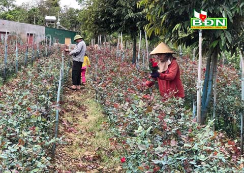 Ngoài các loại hoa thông thường, nhiều nhà vườn cũng trồng hoa cao cấp để phục vụ thị trường Tết. Anh Trần Văn Tập, thôn 14, xã Đắk Wer (Đắk R’lấp) năm nay trồng 6.000 chậu hoa hồng ngoại.