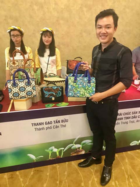 Tốt nghiệp đại học, khó khăn tìm kiếm việc làm ổn định ở TP HCM, anh Khưu Tấn Bửu (26 tuổi; ngụ quận Ninh Kiều, TP Cần Thơ) quyết định về địa phương, khởi nghiệp bằng mô hình làm tranh gạo và túi xách gạo, ở số 41, đường Cách mạng Tháng Tám, quận Ninh Kiều. "Khi vào đại học, tôi tìm hiểu về tranh gạo và bắt đầu làm với những sản phẩm đầu tay như tranh gạo về hoa sen, con mèo, con trâu… bán qua mạng. Sau đó, tôi nghĩ ra thêm việc đính hạt gạo lên túi xách và bắt đầu khởi nghiệp từ đây với số vốn ban đầu khoảng 30 triệu đồng. Thu nhập giờ cũng ổn, không phải lo cảnh thuê trọ vất vả. Vả lại công việc này cũng giúp mình góp một phần nhỏ cho quảng bá sản phẩm du lịch, hạt gạo Cần Thơ" - anh Bửu chia sẻ.