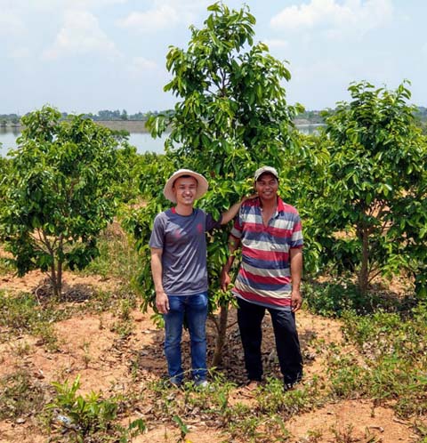 Anh Nguyễn Văn Sơn (trái) rời phố về quê lập nghiệp, thành công với sản phẩm trà mãng cầu Nguyễn Văn Ảnh: NGUYỄN NAM