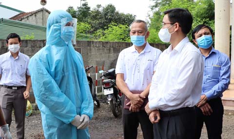 Bí thư Tỉnh ủy Nguyễn Đình Trung thăm hỏi, động viên lực lượng làm nhiệm vụ tại Chốt kiểm soát phòng, chống dịch COVID-19 xã Hòa Phú.