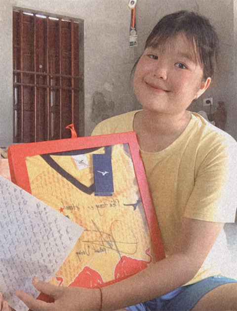 Nữ cầu thủ Trần Thị Hạnh khoe món quà tinh thần ý nghĩa của tiền vệ HAGL Trần Minh Vương
