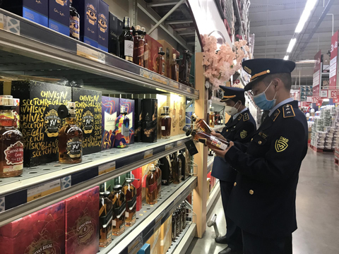 Cán bộ Cục Quản lý thị trường Đắk Lắk kiểm tra việc chấp hành các quy định trong kinh doanh tại Siêu thị MM Mega Market Buôn Ma Thuột.