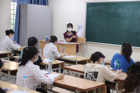 Cô giáo Tú Anh (Trường THPT Việt Nam - Ba Lan, huyện Thanh Trì) nhìn nhận, ở lứa tuổi cấp 3, các em đã có ý thức cao về việc tuân thủ các quy định phòng, chống dịch nên không cần nhắc nhở quá nhiều. Chỉ đôi khi các em ham vui, trò chuyện với bạn bè quá gần nhau trong giờ ra chơi thì giáo viên sẽ góp ý.