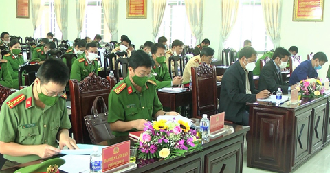 Trong năm, Công an huyện đã thụ lý 124 tố giác, tin báo về tội phạm, kiến nghị khởi tố, đã giải quyết được gần 92% tổng số tin tiếp nhận, vượt chỉ tiêu đề ra; thụ lý điều tra 85 vụ, 212 bị can, trong đó đề nghị truy tố 67 vụ với 187 bị can. Công tác đảm bảo trật tự an toàn giao thông tiếp tục được duy trì, tình hình tai nạn giao thông đường bộ giảm cả 3 tiêu chí về số vụ, số người chết và số người bị thương. Phong trào toàn dân bảo vệ an ninh tổ quốc tiếp tục được củng cố, duy trì hiệu quả hoạt động của các mô hình: “Tiếng kẻng an ninh”, “Kết nối mạng xã hội – Bình yên cho các gia đình”, “Doanh nhân với an ninh trật tự”...