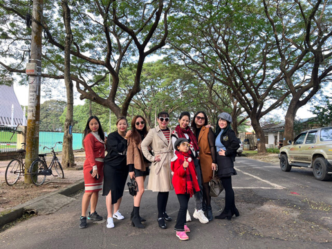 Chị Như Bình (thứ 3 từ phải sang) cùng nhóm bạn check in đường Phan Đình Giót.