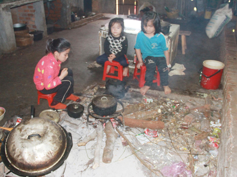 Bếp lửa trong ngôi nhà sàn của người dân Nùng An làng Quảng Hòa.