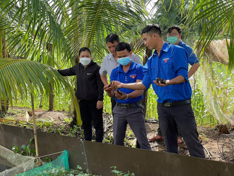 Cán bộ, hội viên thanh niên tham quan mô hình khởi nghiệp hiệu quả của thanh niên.