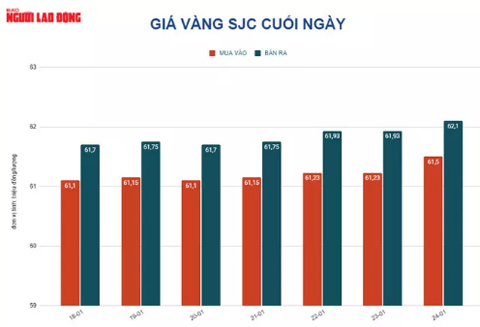 Trước đó, giá vàng SJC tại Việt Nam tăng 50.000 đồng/lượng, chốt cuối ngày tại 62 triệu đồng/lượng. Như thế, giá vàng trong nước cao hơn giá vàng thế giới quy đổi khoảng 11,4 triệu đồng/lượng.