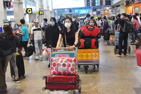 Hành khách về quê đón Tết tại sân bay Tân Sơn Nhất (TP HCM) ngày 23-1 Ảnh: TẤN THẠNH
