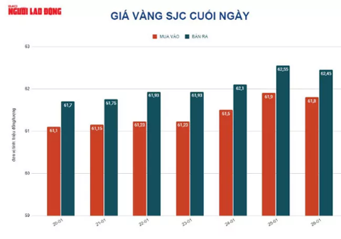Trước đó, giá vàng SJC tại Việt Nam ngày giảm 100.000 đồng/lượng, chốt cuối ngày tại 62,45 triệu đồng/lượng. Như thế, giá vàng trong nước cao hơn giá vàng thế giới quy đổi khoảng 12,5 triệu đồng/lượng.