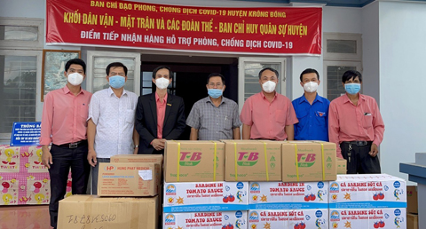 Lãnh đạo Công ty Cổ phần Dược - Vật tư y tế Đắk Lắk trao quà hỗ trợ phòng, chống dịch COVID-19 tại huyện Krông Bông