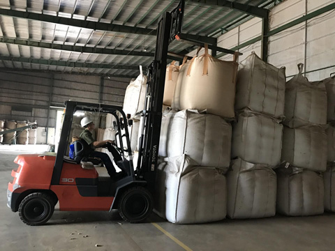 Vận chuyển các lô hàng cà phê trong kho của Công ty Simexco Đắk Lắk.