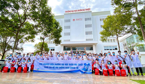 Cán bộ, giảng viên, sinh viên Trường Đại học Buôn Ma Thuột tình nguyện tham gia phòng, chống dịch bệnh COVID-19.