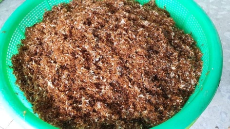 Kiến sau khi được làm sạch sẽ phơi khô trước khi giã làm muối