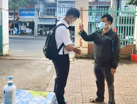 Trường THCS Phan Bội Châu (TP. Buôn Ma Thuột) đảm bảo công tác phòng, chống dịch COVID-19 khi học sinh đến trường.