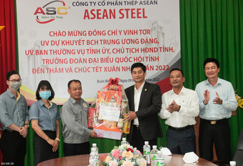 Chủ tịch HĐND tỉnh, Trưởng Đoàn Đại biểu Quốc hội tỉnh Y Vinh Tơr thăm, chúc Tết tại Công ty Cổ phần Thép Đông Nam Á.