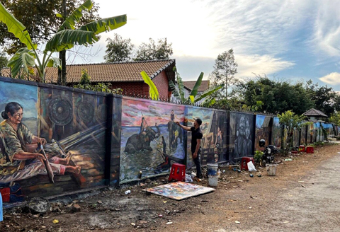 Một đoạn đường bích họa tại buôn Tơng Jú (xã Ea Kao, TP. Buôn Ma Thuột).